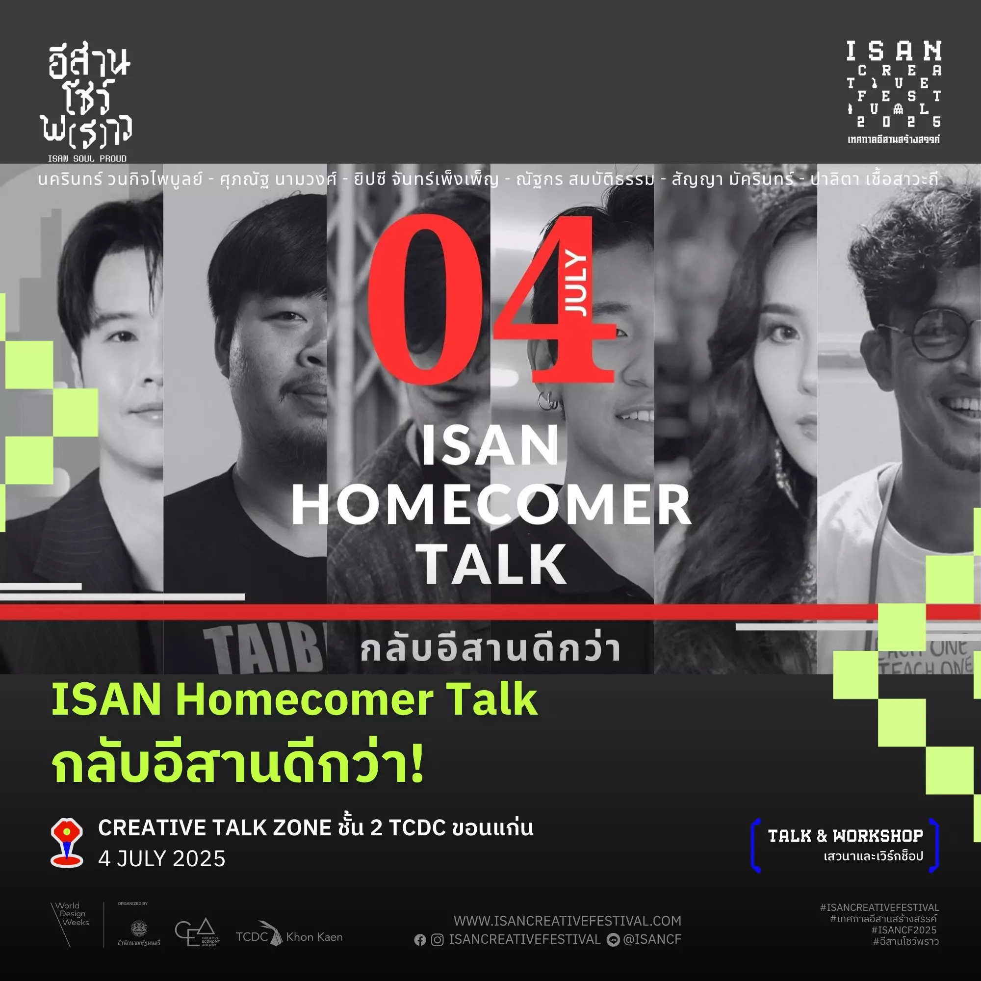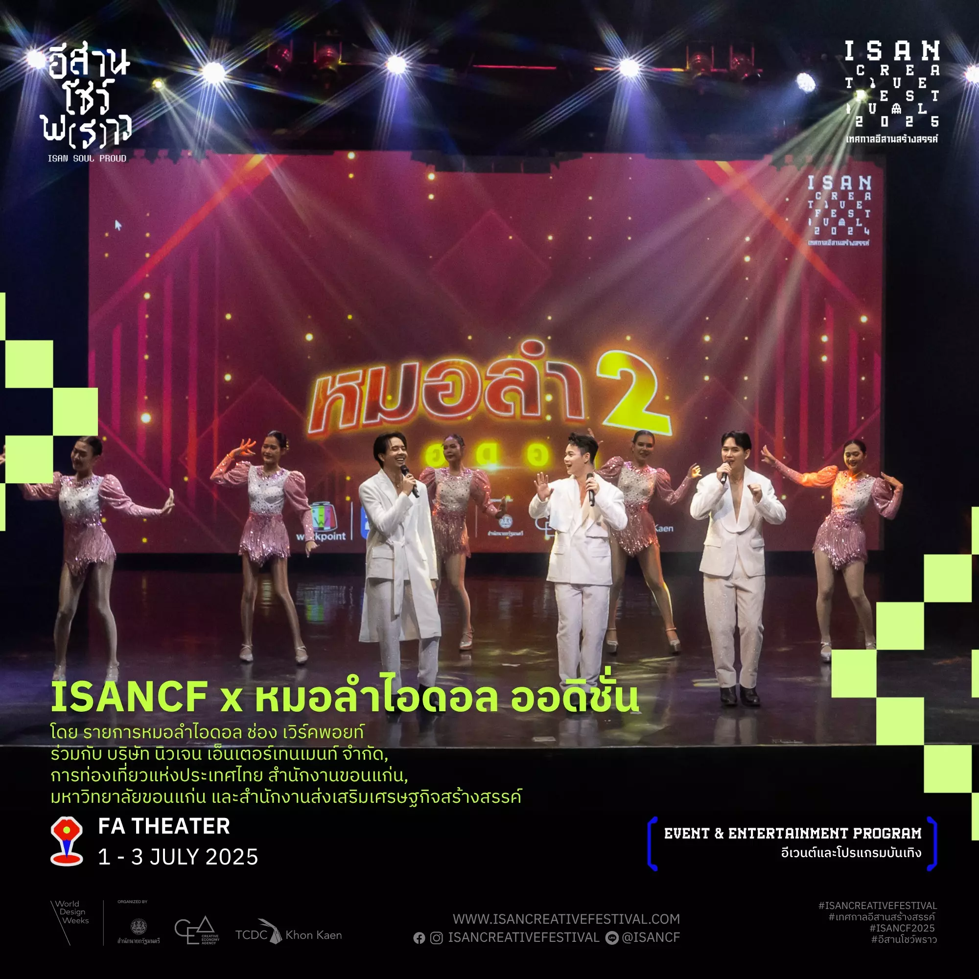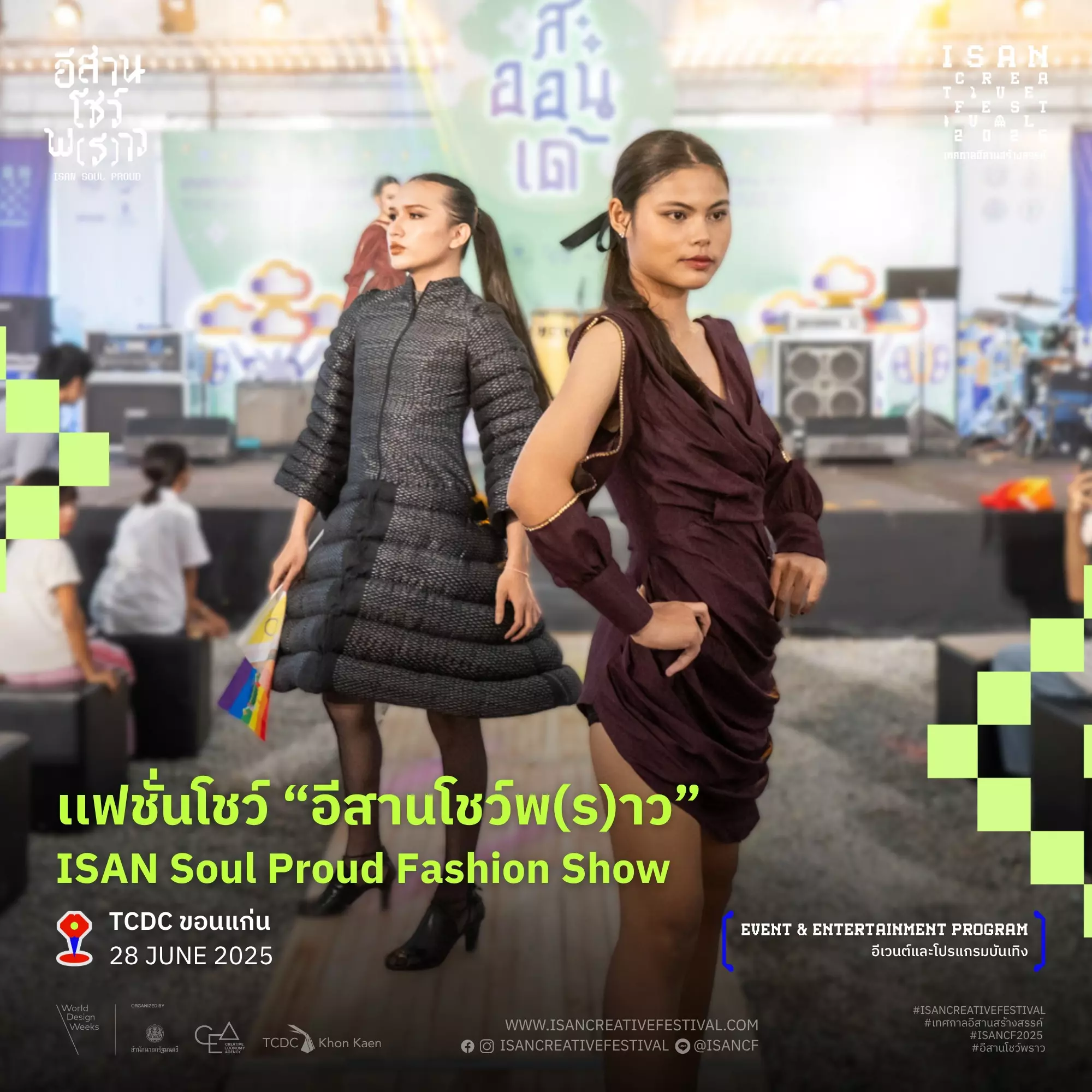 ISAN Creative Festival 2025 หรือ เทศกาลอีสานสร้างสรรค์ 2568 กลับมาอีกครั้งในธีม “อีสานโชว์พ(ร)าว – ISAN SOUL PROUD” พร้อมจัดเต็มกิจกรรมสร้างสรรค์กว่า 200 โปรแกรม ตลอด 9 วันเต็ม ระหว่างวันที่ 28 มิถุนายน – 6 กรกฎาคม 2568 ที่จังหวัดขอนแก่น