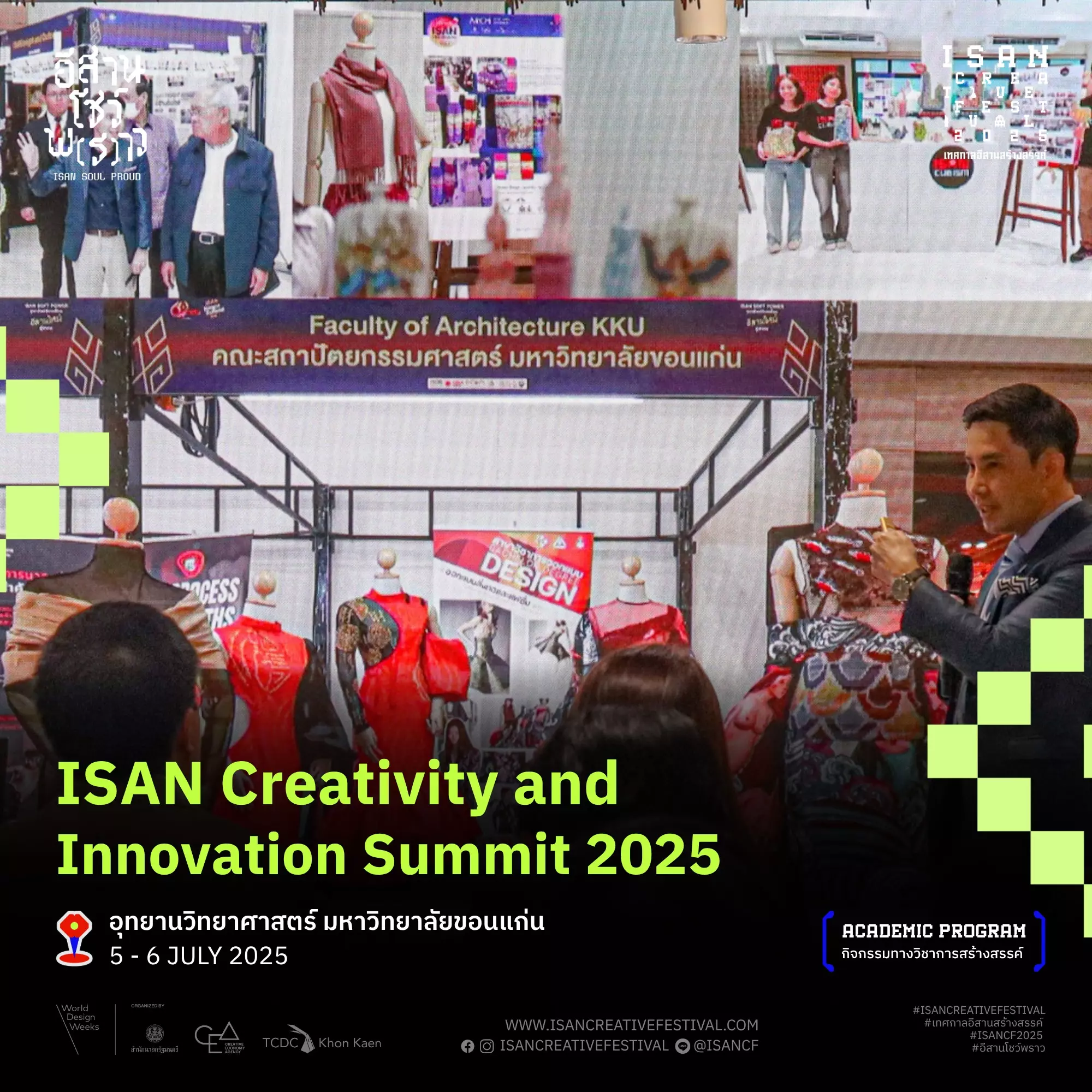 ตลอดงานยังมี ISAN Showcase และตลาดสร้างสรรค์ D-KAK Market ที่รวมสินค้าจากผู้ประกอบการและศิลปินท้องถิ่น รวมถึงการประชุม ISAN Creativity & Innovation Summit 2025 การยกระดับเวทีวิชาการด้านการออกแบบและนวัตกรรมในระดับนานาชาติ