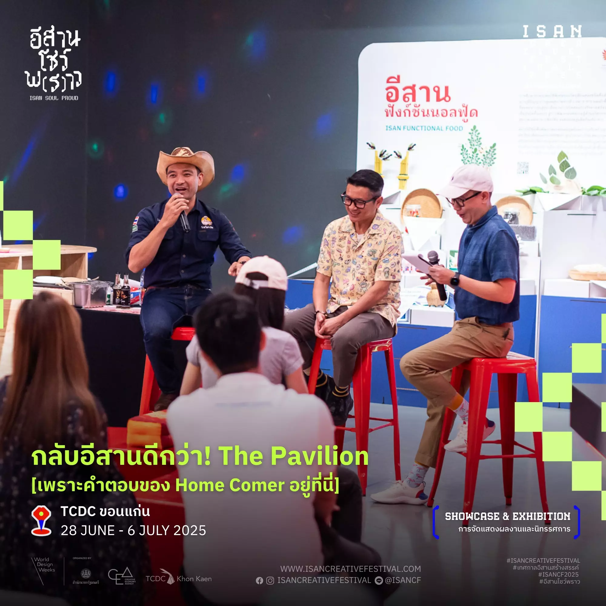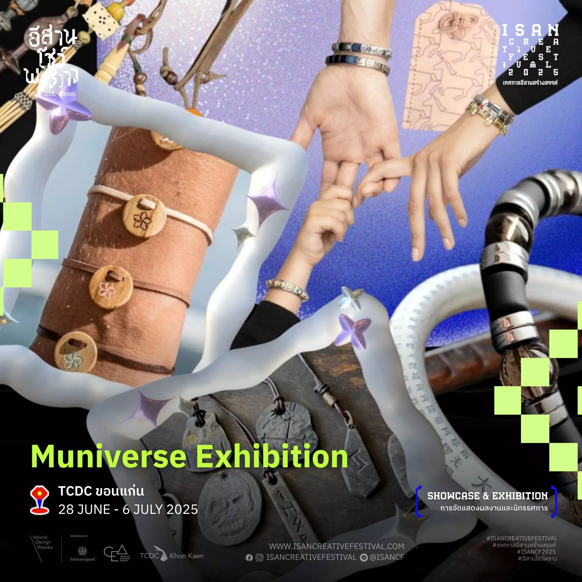ในฝั่งงานออกแบบ พบกับ The Pavilion นิทรรศการของ 20 คนรุ่นใหม่ที่กลับบ้านมาสร้างแบรนด์, ISAN MU-NIVERSE ที่ผสานงานคราฟต์กับความเชื่อร่วมสมัย และแฟชั่นโชว์ “อีสานโชว์พ(ร)าว”