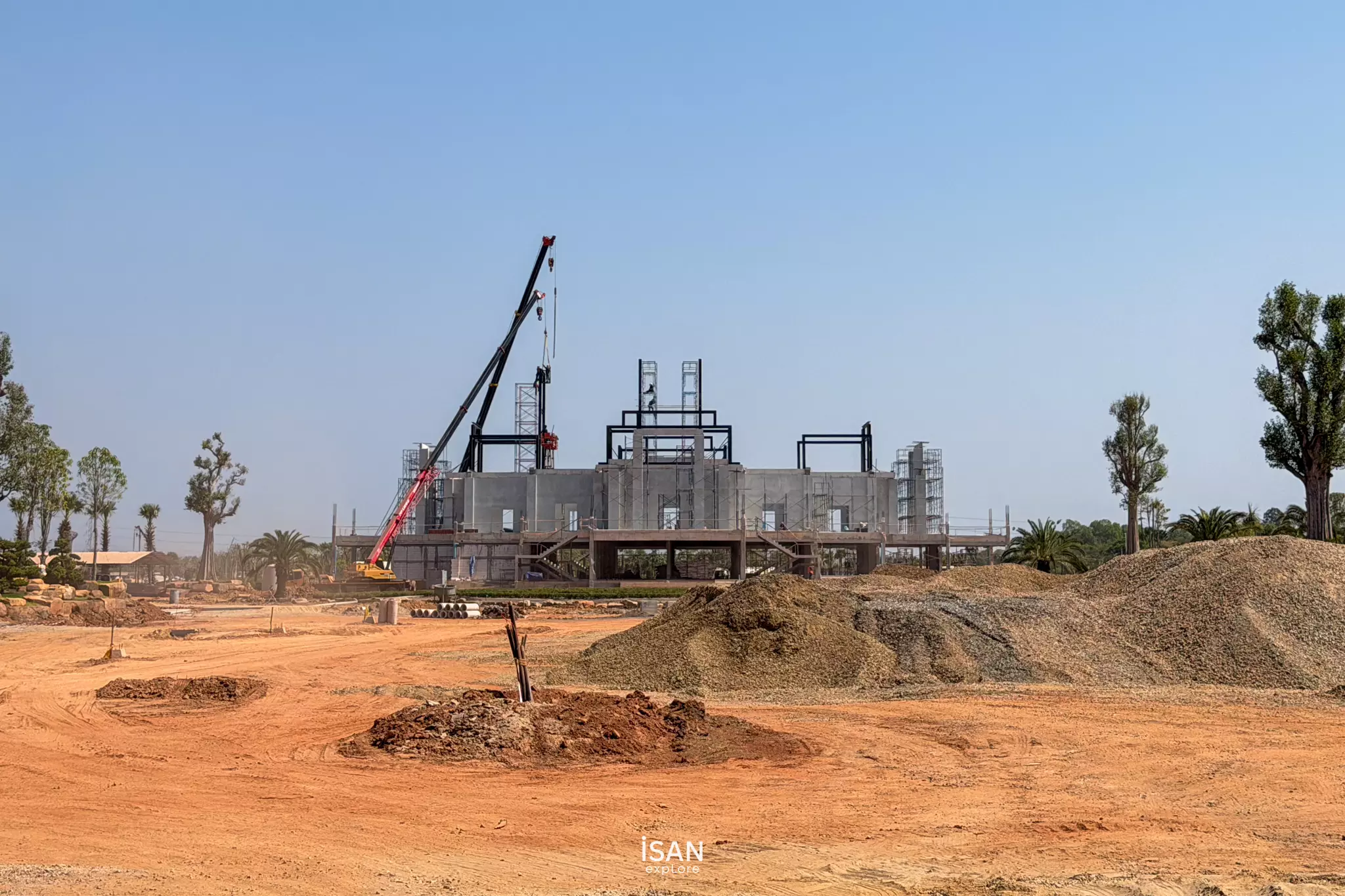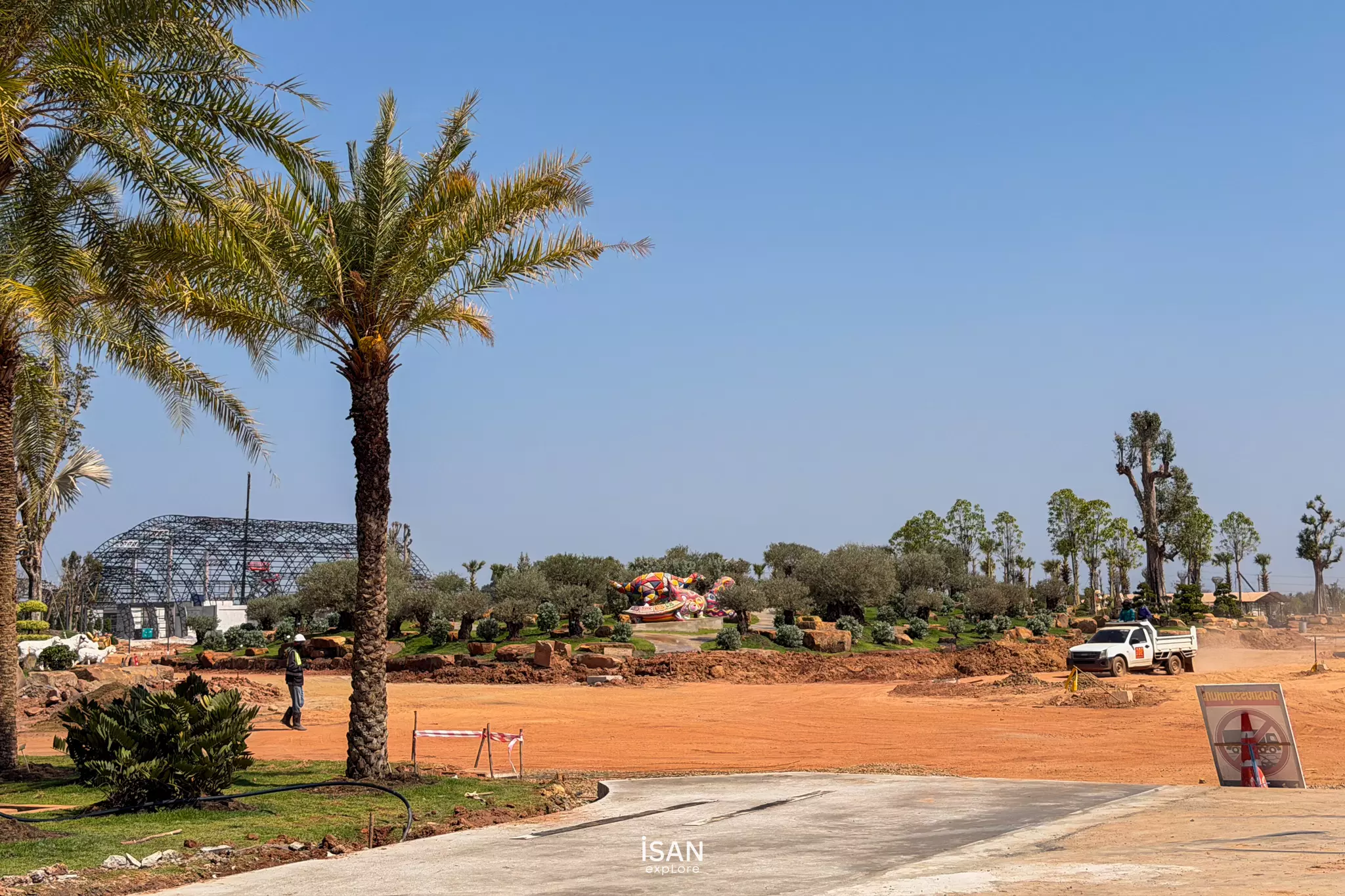 พื้นที่จัดงานกว่า 1,030 ไร่ กำลังอยู่ในช่วงดำเนินงานก่อสร้างและปรับภูมิทัศน์ โดยหลายโซนสำคัญมีความคืบหน้าอย่างเห็นได้ชัด อาทิ